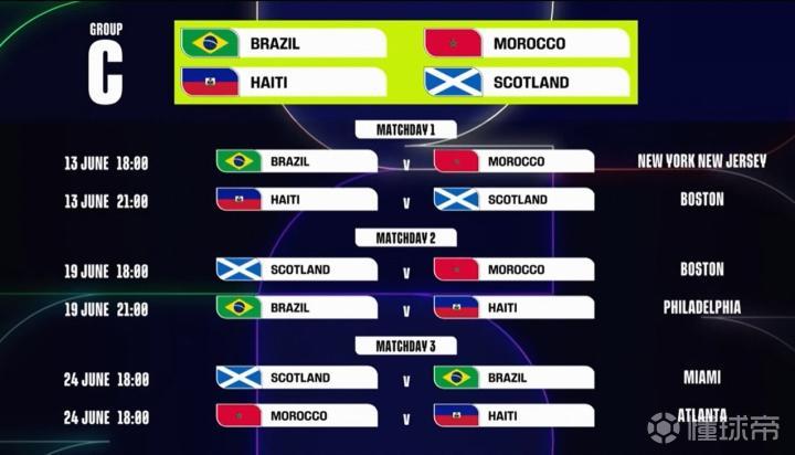 C组:巴西、摩洛哥、苏格兰、海地