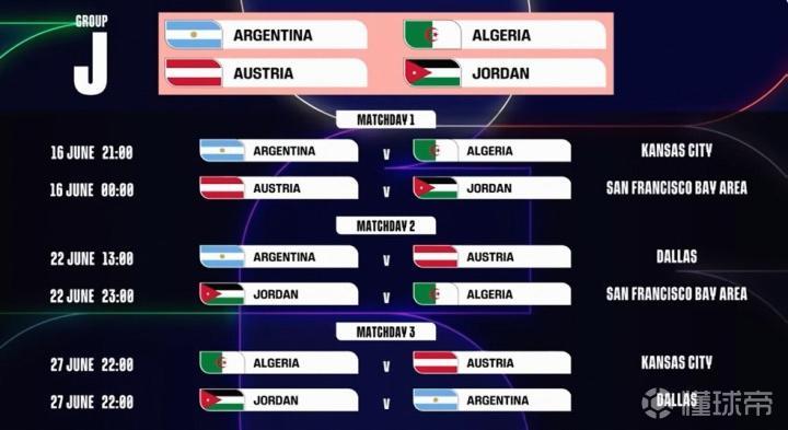 J组:阿根廷、奥地利、阿尔及利亚、约旦