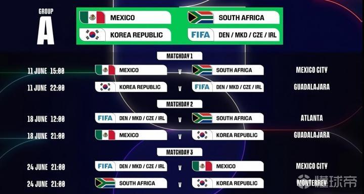 北京时间12月7日,FIFA官方公布了2026年美加墨世界杯的全部赛程,墨西哥与南非的揭幕战将在北京时间6月12日3:00上演。