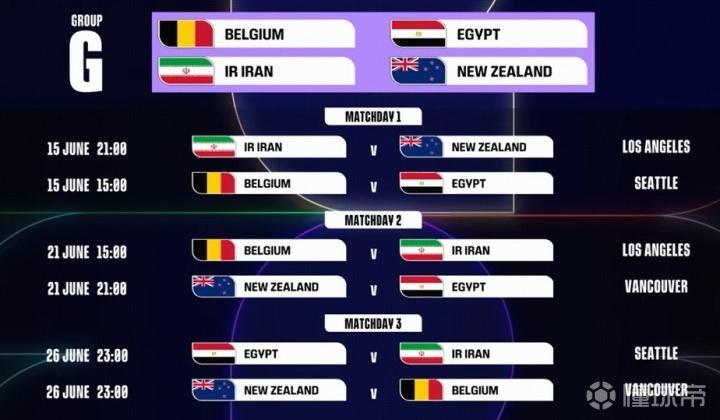 G组:比利时、伊朗、埃及、新西兰