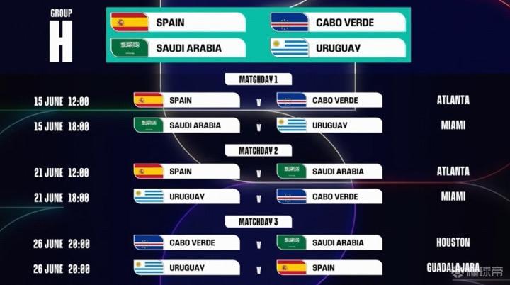 H组:西班牙、乌拉圭、沙特、佛得角